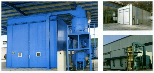 噴砂房(fáng)是我公司在蜂窩地闆技術的基礎上(shàng),自行研發、設計的環保型蜂窩式噴砂(丸)房(fáng),可按照客戶的産品特性、噴砂要求等設計制作(zuò)。蜂窩地闆噴砂房(fáng)是利用風(fēng)機的風(fēng)力為(wèi)動力,将磨料通過回料管道吸送到旋風(fēng)分(fēn)離器(qì)中進行風(fēng)力。然後進入噴砂系統循環利用。