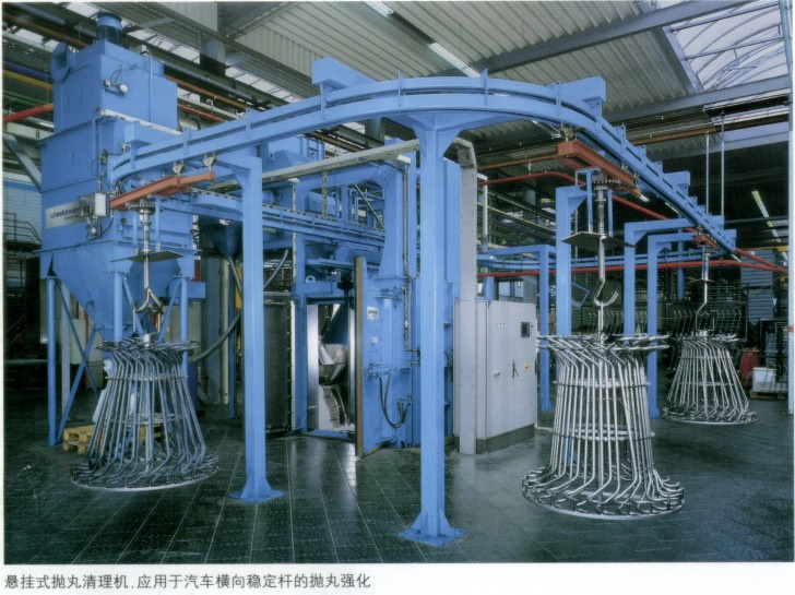 懸鏈式抛丸清理(lǐ)機是一(yī)種單行程懸鏈連續式抛丸清理(lǐ)設備,它具有工件靜态裝卸、自動快(kuài)速輸送與定位,工件旋轉抛丸清理(lǐ)。整機采用常規電器(qì)控制,工件的輸送軌道無級調速。适合于大批量、鑄鋼、鑄鐵、及焊接件的全方位抛丸清理(lǐ),用于各種形式的可吊挂式工件。通過抛丸清理(lǐ),不但(dàn)可以去除工件表面的鏽蝕,清理(lǐ)掉結構件上(shàng)的焊渣,還可以消除工件的焊接應力,提高工件的抗疲勞強度,增加工件噴漆時(shí)的漆膜附着力,并達到提高整個(gè)工件表面及内在質量的目的。廣泛用于冶金(jīn)、石油、化(huà)工、機械等行業。