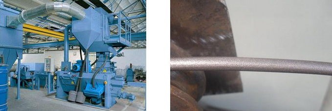 JNQ型線材抛丸清理(lǐ)機是我公司根據用戶需求而設計制作(zuò)的一(yī)種新(xīn)型專用抛丸清理(lǐ)設備,主要用于小型圓鋼及線材表面的清理(lǐ)強化(huà),通過抛丸強化(huà),不但(dàn)可以去除工件表面的鏽蝕,為(wèi)表面無損探傷和塗防腐漆做準備,而且可以增強工件的抗拉強度,提高了(le)工件的使用壽命。