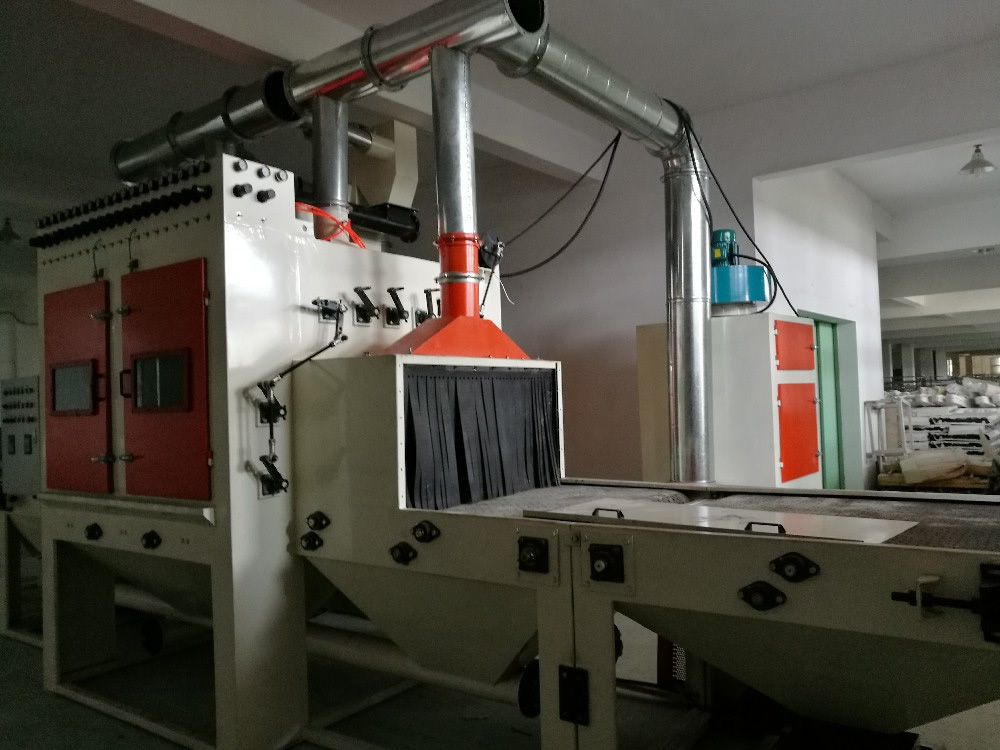 5,本機可選擇三角帶、平履帶、鋼帶三種輸送方式。除塵可選布袋、濾筒兩種。